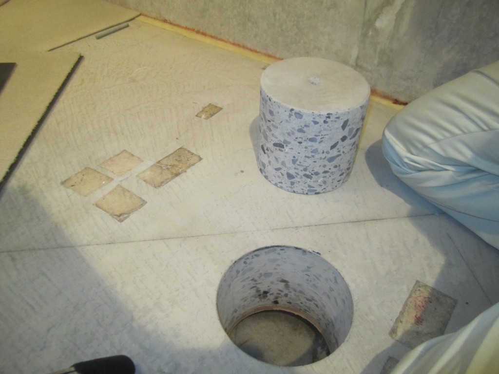 床面はコンクリートの為、事前にコア抜きで厚さを調査済み。 厚150mmメッシュ入でした。