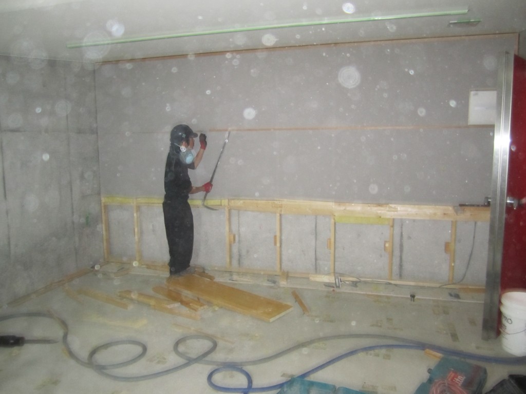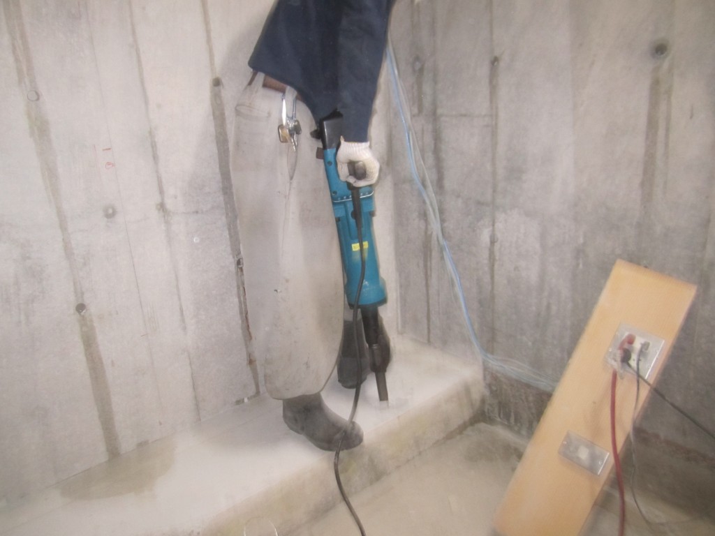 壁面撤去後、斫り工 壁に近い所は電動ブレーカーを使用