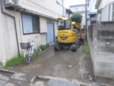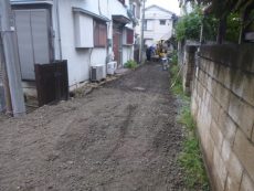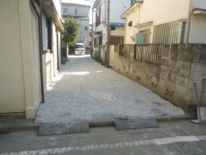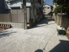 大田区内で25mの私道奥にある新築シュアハウスの外構工事と私道の砂利舗装をしました。