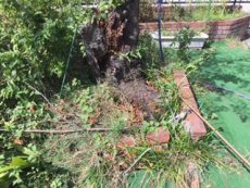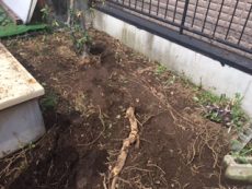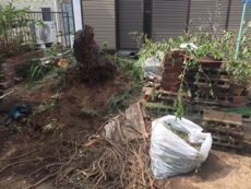 木の伐根を含む撤去工事です。80cm正方形の煙突部から全て手作業で降ろし積み上げて均して搬出でした。