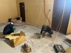 最初の初日は色々と時間が足りずに苦戦しましたが、2日目3日目と作業員も慣れてからはスムーズに作業が進み 復旧工事のボード貼りや塗装工事も予定通りに完工し、施主様も大変喜んで頂けました。