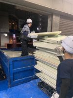 現場から廃材を積み込み、場所までの距離がかなりあったのでハンドリフトを使い廃材を搬出しました。