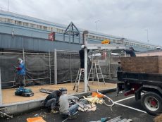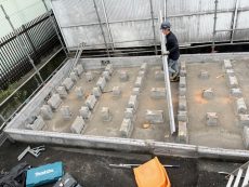 プレハブ撤去後基礎を撤去した際に傷んだ路盤を復旧するまでの工事になりますので、路盤を削ったり舗装を復旧して、最後に床材で床の化粧直しをして完工になります。